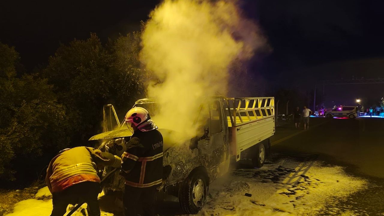 Yangın, Erzin ilçesi Bahçelievler Mahallesi’nde yaşandı. Cadde üstünde park halinde bulunan kamyonet alevlere teslim oldu. İhbar üzerine bölgeye itfaiye ekibi sevk edildi. Alevler, çevreye sıçramadan Hatay Büyükşehir Belediyesi itfaiye ekibi tarafından kısa sürede kontrol altına alındı.