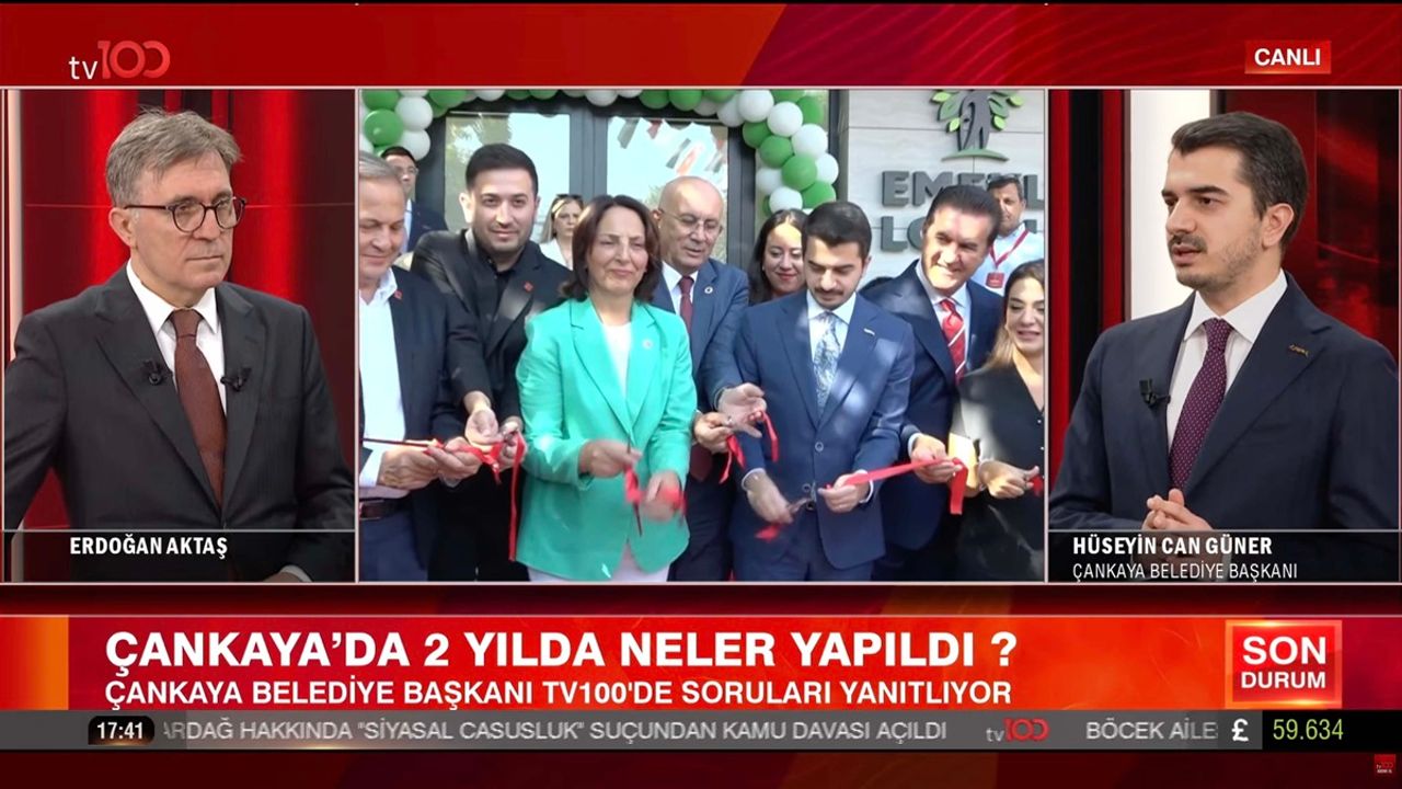 Çankaya Belediye Başkanı Hüseyin Can Güner, TV100’de Erdoğan Aktaş’ın sunduğu Başlıklar programının canlı yayın konuğu oldu. Görev süresinde ikinci yılını tamamlamaya hazırlanan Başkan Güner, Çankaya’da seçim öncesinde verdikleri sözleri, hayata geçirilen ve devam eden projeleri ile belediyecilik anlayışlarını kamuoyuyla paylaştı.
