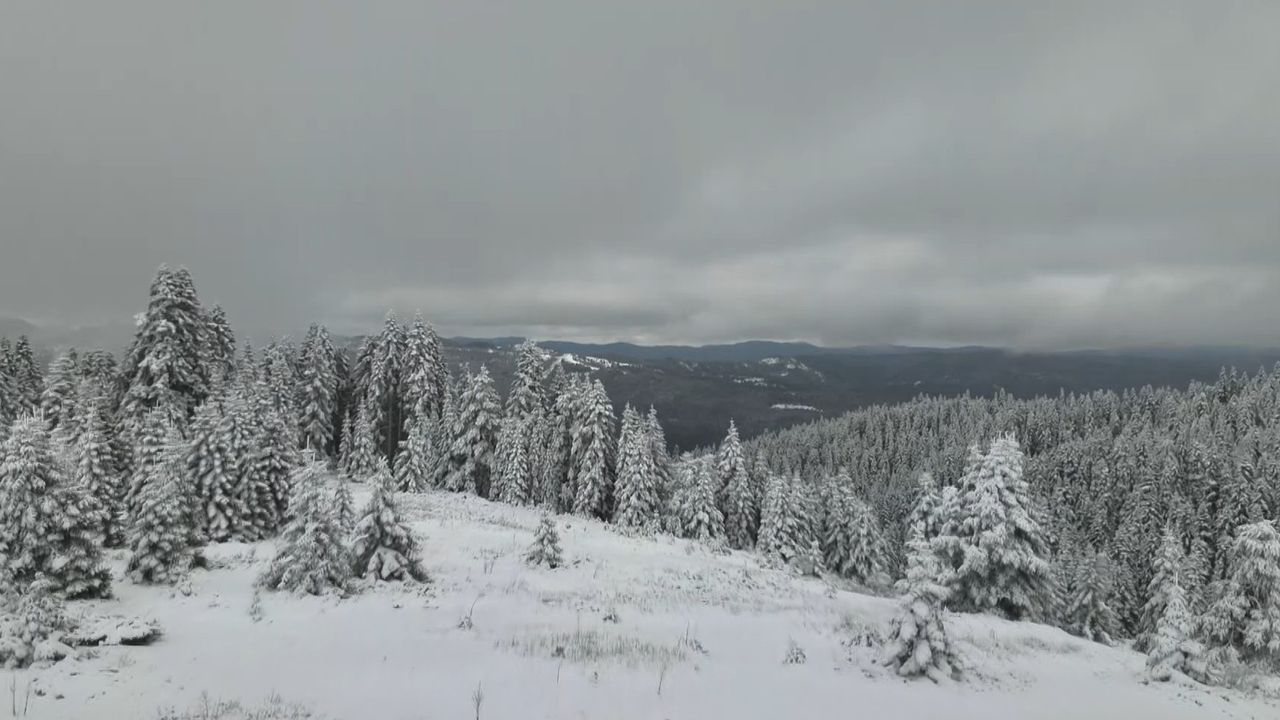 Kar yağışıyla beyaza bürünen Ilgaz Dağı, havadan görüntülendi.