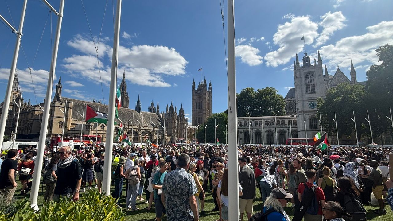İsrail’in Gazze Şeridi’ndeki katliamlarına ve bölgeyi işgal planına tepkiler sürerken, bu kez İngiltere’nin başkenti Londra Filistin’e destek gösterilerine sahne oldu. Parlamento Meydanı ve Whitehall bölgesinde toplanan yüzlerce gösterici, İngiltere'de yasaklanan "Palestine Action" grubuna destek vererek İsrail'in Gazze’ye yönelik saldırılarına tepki gösterdi.