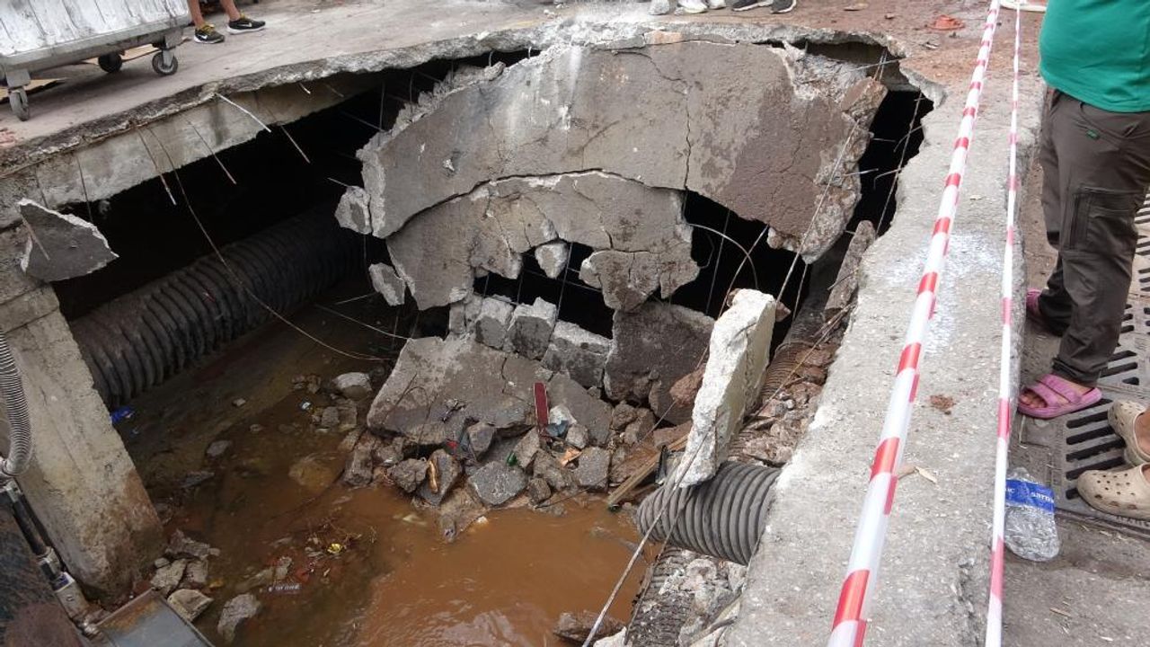Olay, saat 08.00 sıralarında Serdar Mahallesi Topdemir Sokak'ta meydana geldi. Edinilen bilgiye göre, sürücüsünün kimliği henüz öğrenilemeyen hafriyat kamyonu, sokakta ilerlediği sırada beton zemin aniden çöktü. Kamyon, oluşan çukurun içine düştü.