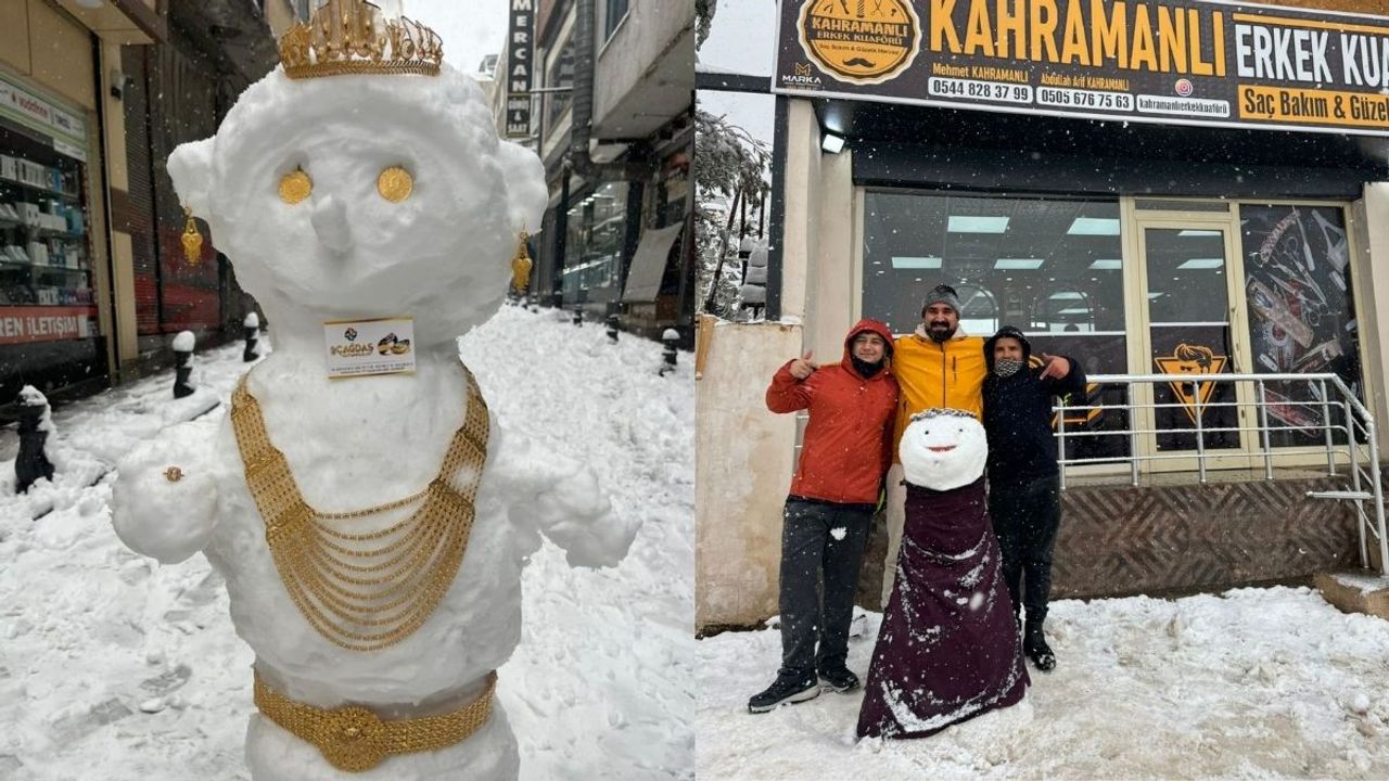 Nizip ilçesinde ise bir kuyumcu, kar yağışı nedeniyle müşteri gelmeyince iş yerinin önüne yaptığı kardan gelini altınlarla süsledi. Boynuna bilezikler ve kolyeler takılan kardan gelin vatandaşların ilgisini çekerken ortaya renkli görüntüler çıktı.