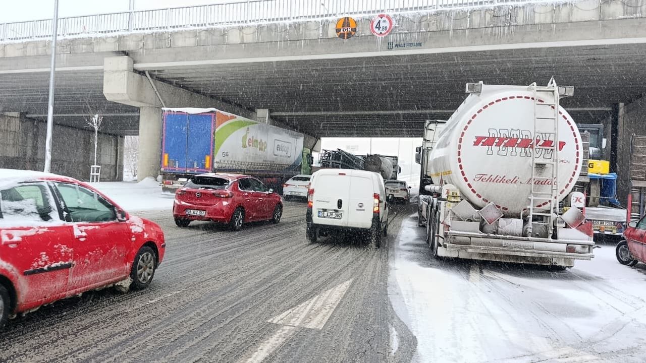Kayseri’de dünden itibaren etkili olan olumsuz hava şartları ve kar yağışı, ulaşımı olumsuz etkiledi. Bu kapsamda Kayseri-Malatya karayolu çift taraflı olarak trafiğe kapatıldı, Mimarsinan OSB kavşağında araç kuyrukları oluştu.