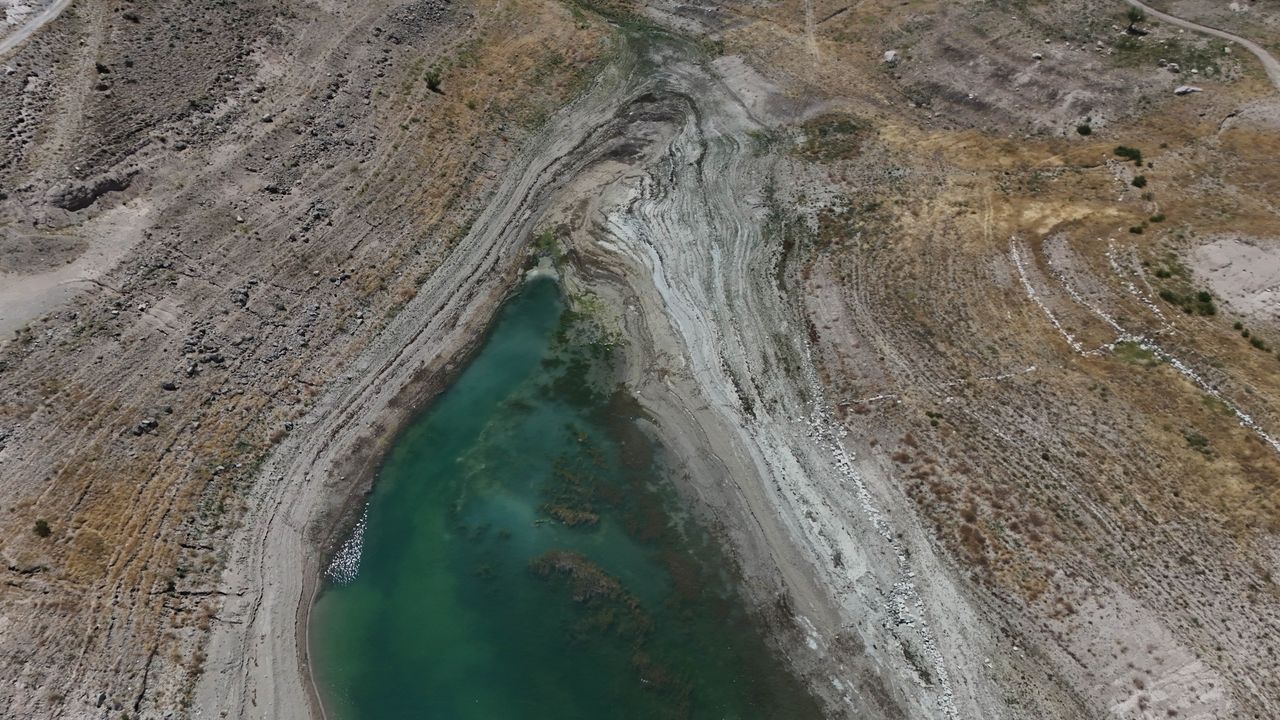 Kayseri’de, Yamula Barajı’ndaki suların sıcaklar nedeniyle çekilmesinin ardından eski mahalleler ve yollar ortaya çıktı.