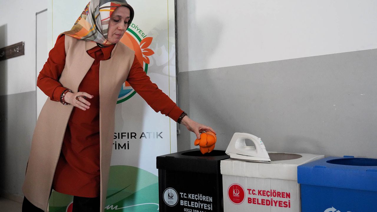 Keçiören’de düzenlenen sıfır atık eğitimi kapsamında öğrencilere, geri dönüştürülebilir atık türleri ve bu atıkların kaynağında nasıl ayrıştırılması gerektiği uygulamalı olarak gösterildi. Eğitimlerde, günlük yaşamda çevreyi korumaya yönelik alınabilecek önlemler de örneklerle anlatıldı.