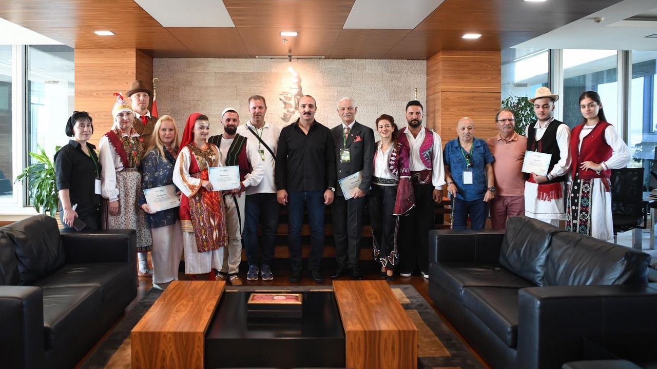 Öte yandan ‘Halk Dansları Gösterileri’ etkinliği için Türkiye’ye farklı ülkelerden gelen dans grupları temsilcileri, Konyaaltı Belediye Başkanı Cem Kotan’ı ziyaret etti. Ziyaretten dolayı duyduğu memnuniyeti aktaran Başkan Kotan, "Bizler, sanata ve sanatçıya olan saygımız ile çalışmalarımıza yön veriyoruz. Halkımızı sürekli olarak sanat etkinlikleriyle buluşturuyoruz. Sanatın toplumumuz için ne kadar değerli olduğunun farkındayız. Sanata olan katkılarınız için sizlere çok teşekkür ediyorum" diye konuştu. Gerçekleştirilen etkinlik ve misafirperverliği için Başkan Kotan’a teşekkürlerini ileten temsilciler, Konyaaltı ilçesinin Antalya ve Türkiye için ayrı bir yere sahip olduğunu bildiklerini vurguladı.