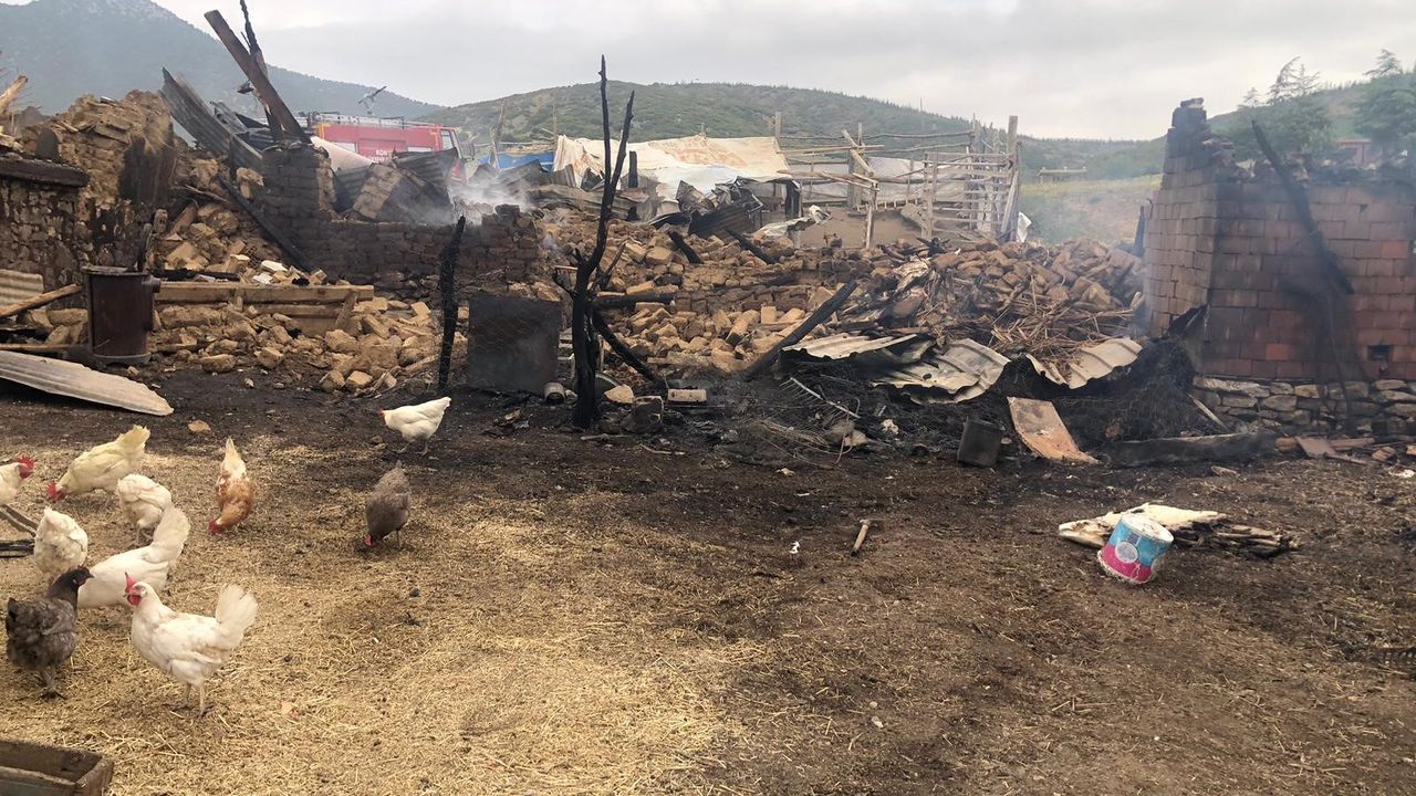 Konya'da gece yarısı çıkan yangında ev ve ahır küle döndü!