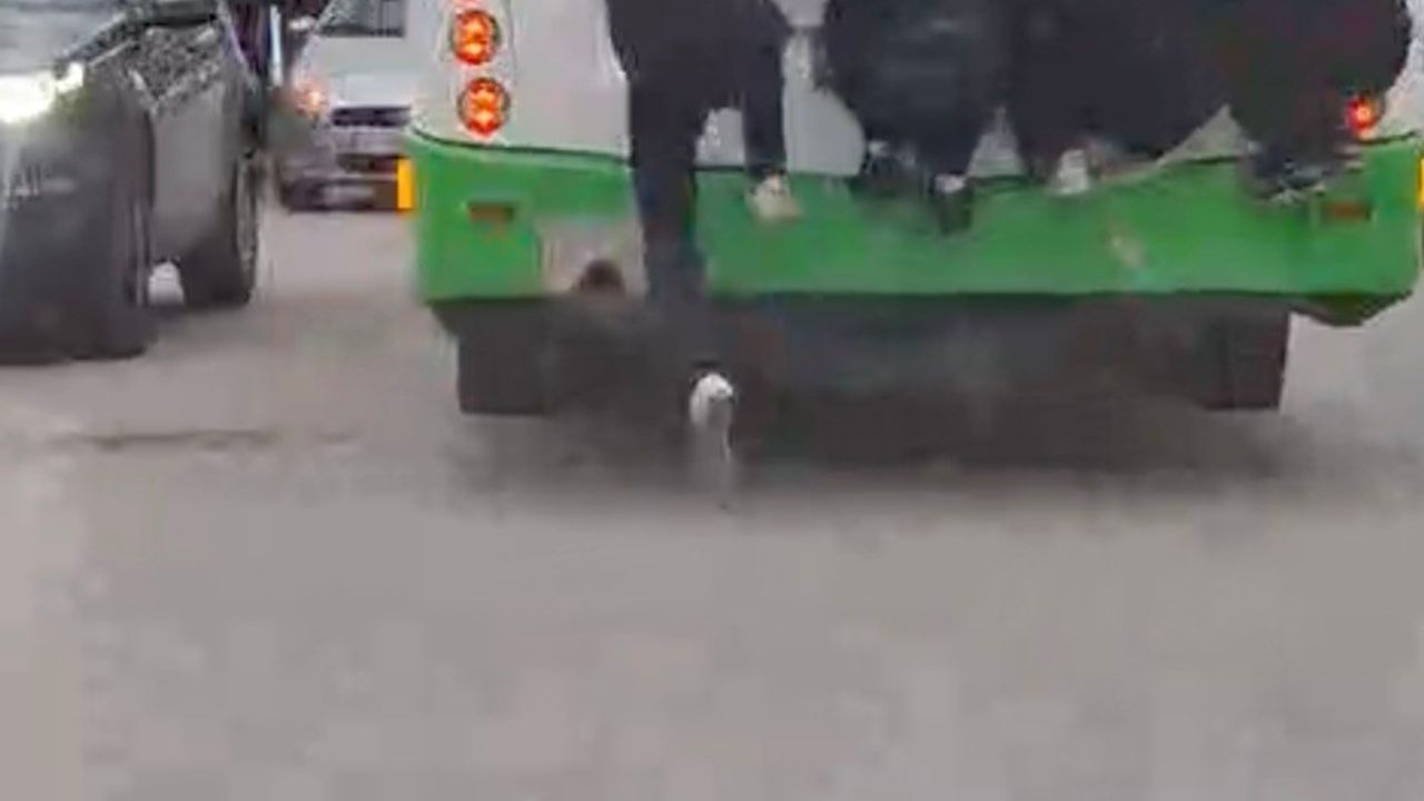 Edinilen bilgiye göre, Millet Mahallesi'nde özel halk otobüsünün arkasına asılan öğrenciler, trafikte ilerleyen otobüsün arasında yolculuk yaptı. Otobüs şoförünün durumdan haberdar olmadığı öğrenilirken, öğrencilerin bu davranışı gören vatandaşlar büyük panik yaşadı.