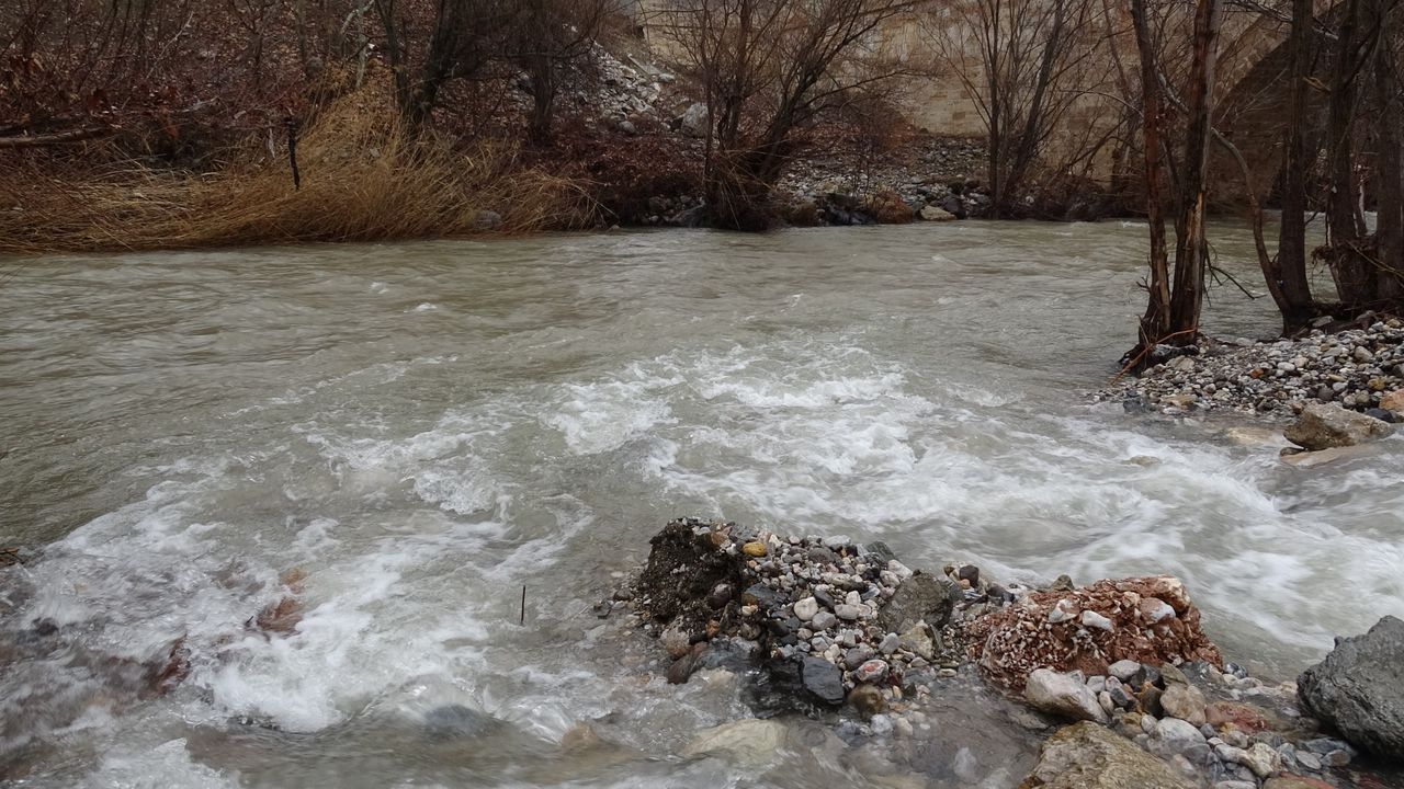 Malatya'nın Arapgir ilçesinde etkili olan sağanak ve kar yağışı, Kozluk Çayı'nın taşmasına neden oldu.