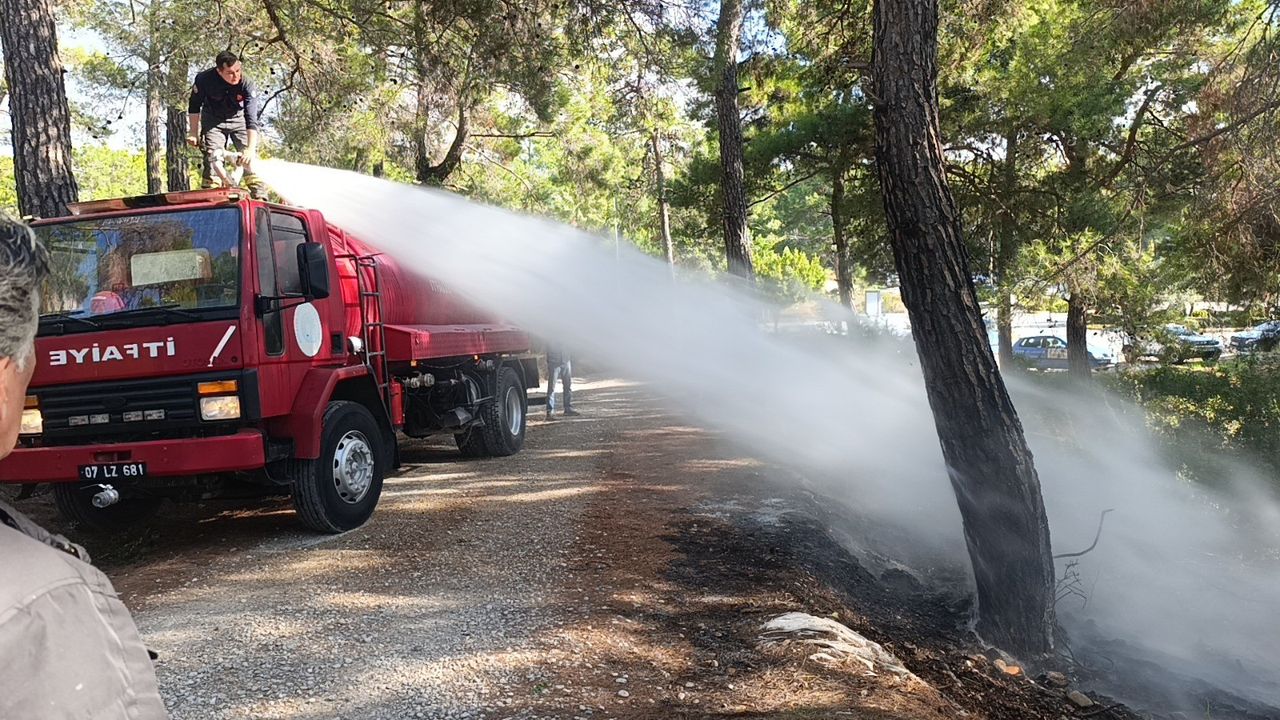 Antalya'nın Manavgat ilçesinde ormanlık alanda çıkan yangın vatandaşların müdahalesi ile büyümeden söndürüldü. İtfaiye ekipleri alanda soğutma çalışması yaparken yanan alanda cam şişelerin çokluğu dikkat çekti.