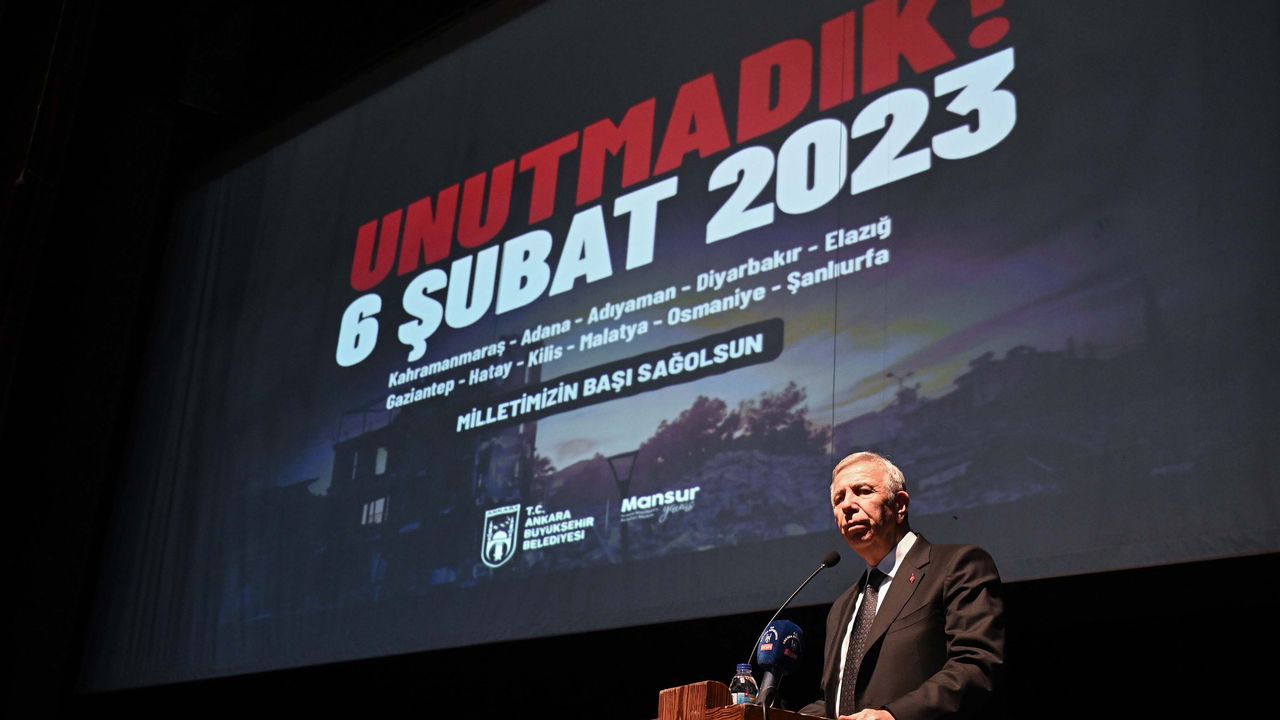 Ankara Büyükşehir Belediyesi (ABB), 6 Şubat 2023 Kahramanmaraş merkezli depremlerin üçüncü yıl dönümü dolayısıyla anma programı düzenledi. Gençlik Parkı Büyük Tiyatro’da gerçekleştirilen programa, Ankara Büyükşehir Belediye Başkanı Mansur Yavaş ve eşi Nursen Yavaş’ın yanı sıra belediye bürokratları, akademisyenler, sivil toplum kuruluşu temsilcileri ve depremzede aileler katıldı.