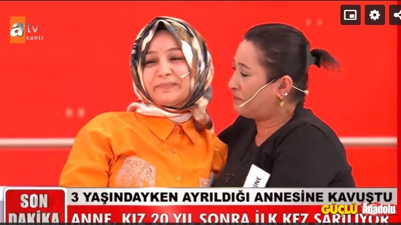 Emine Kurtlar, programa katıldı. Kızına kavuşan Kurtlar, “Annecim çok özür dilerim. Ben senden sonra hiç çocuk yapmadım. Senin yerine kimseyi koymak istemedim. Ben kızımı yıllarca aradım. Babası izin vermedi. Ailem yanımda olmadı. Yıllar sonra bir evlilik yaptım. Eşimle birlikte kızımı aradık ama bulamadık. Sonra eşim koronavirüsten hayatını kaybetti. Ben de birkaç yıl sonra yeni biriyle evlendim. Yeni eşimin Dilek’ten haberi yoktu ama konuştuk. Git kızını gör dediler” ifadelerini kullandı.