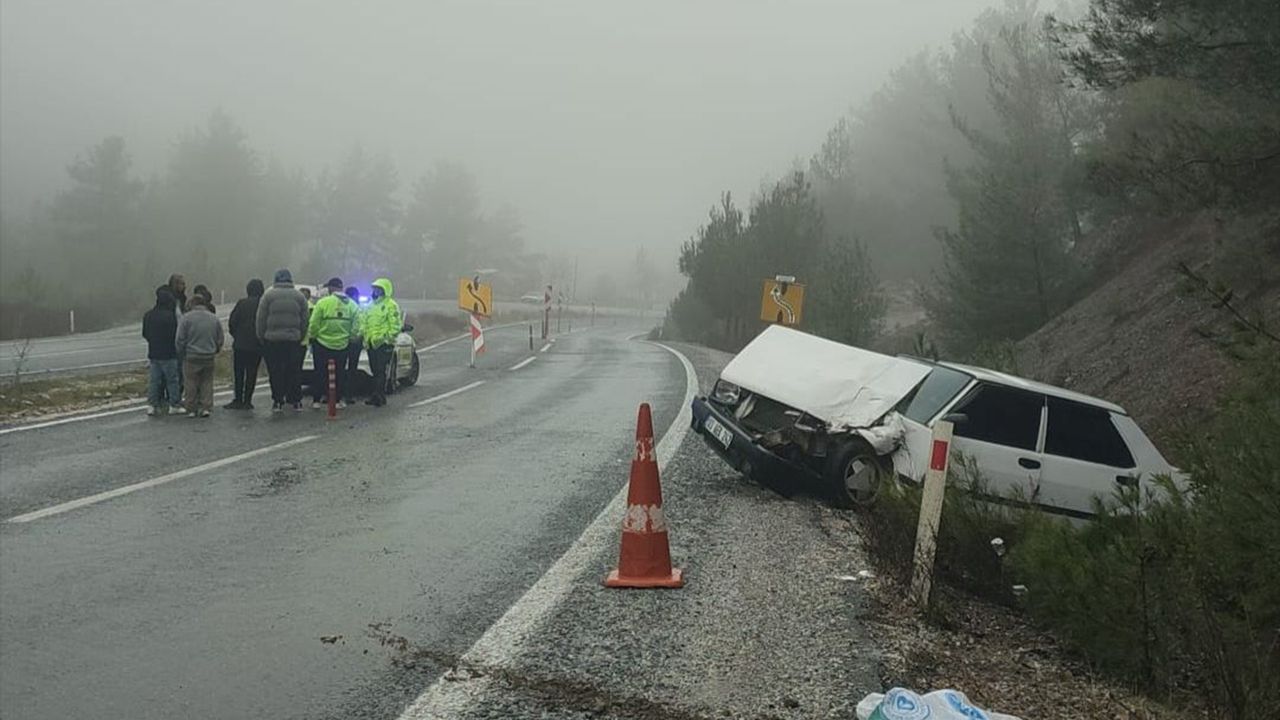 Edinilen bilgilere göre, Muğla-Denizli karayolu Gölcük Mahallesi mevkiinde seyir halinde olan otobüs ile Fiat Tofaş marka otomobil çarpıştı. Çarpışmanın etkisiyle otomobil kağıt gibi savrularak yol kenarında durabildi.