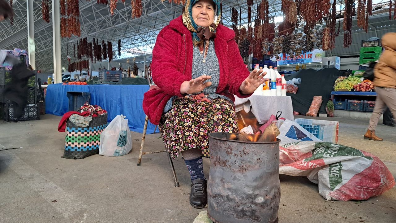 Yanan ateşten pazara gelen müşteriler de yararlanıyor.