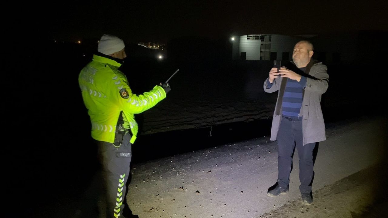 Sürücü, kaza yerine gelen polis ekiplerini görünce telefonuyla olay yerini görüntüleyip, kazayı spiker gibi anlattı. Amatör kamerasıyla kayda alan sürücü, yoldaki çalışma nedeniyle uyarı levhaları konulmamasına tepki gösterdi. Polis ekipleri sürücüye alkol testi uyguladı. 0.79 promil alkollü olduğu tespit edilen sürücüye alkollü araç kullanmaktan 9 bin 268 TL, ehliyetsiz araç kullanmaktan ise 18 bin 628 TL cezai işlem uygulandı. Sürücü ifadesi alınmak üzere karakola götürülürken, araç çekici yardımıyla yoldan kaldırıldı.