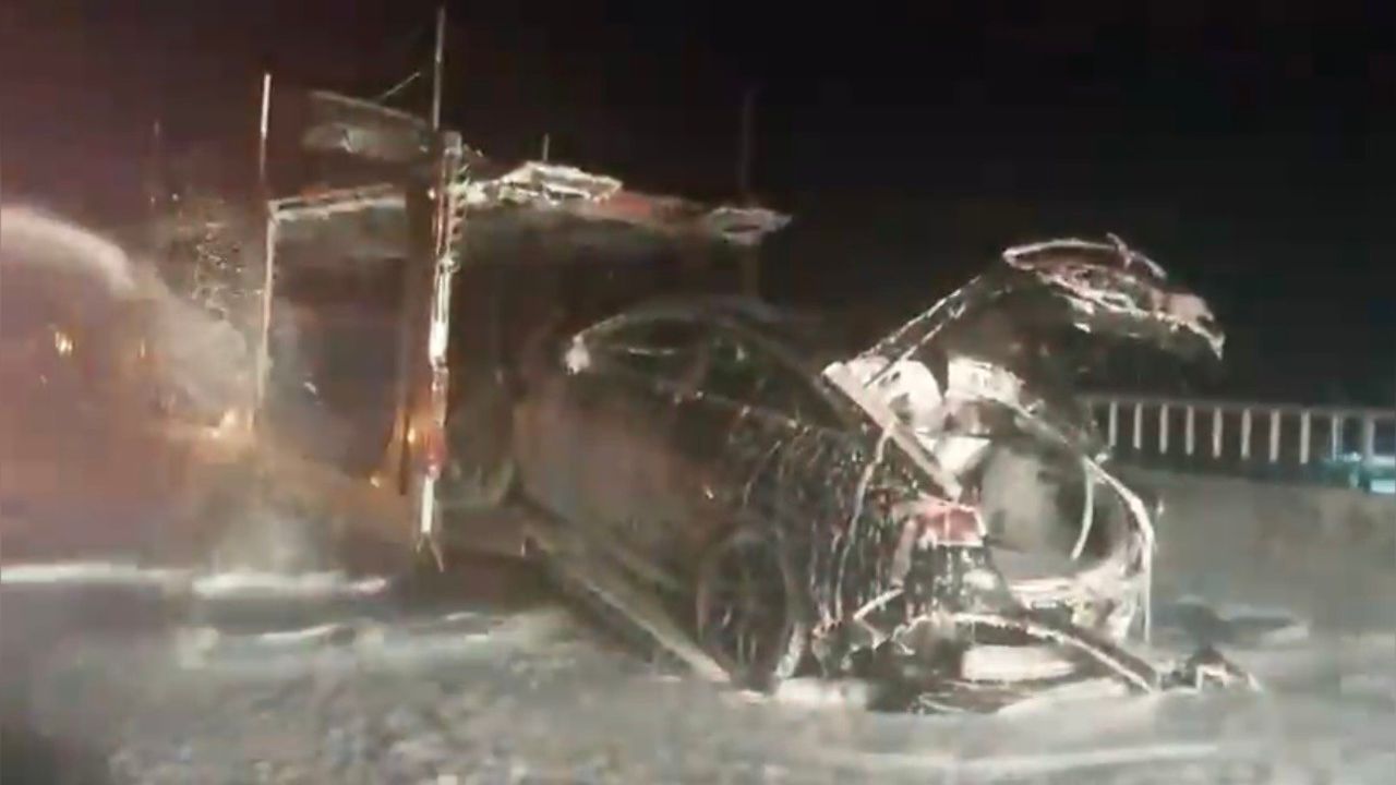 Osmaniye'nin Bahçe ilçesinde araç taşıyan bir tırda çıkan yangında, sıfır 3 araç tamamen yanarak kullanılamaz hale geldi.