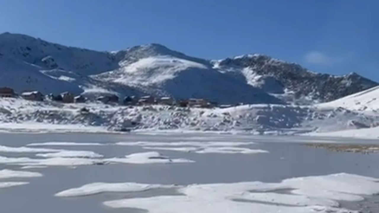 Yetkililer, buz kalınlığının bilinmediğini ve yüzeyin her noktada güvenli olmayabileceğini belirterek vatandaşlara "Göl üzerine çıkmayın" uyarısında bulundu.