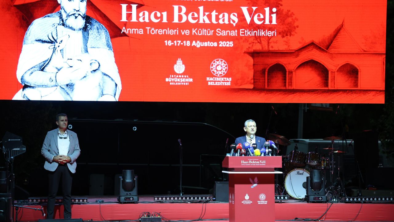 Nevşehir'in Hacıbektaş ilçesinde "62. Ulusal, 36. Uluslararası Hacı Bektaş Veli Anma, Kültür ve Sanat Etkinlikleri"ne katılan CHP Genel Başkanı Özgür Özel, "Hünkar 754 yıl önce Hakk'a yürüdü ama bugün hâlâ bize ışık tutuyor" ifadelerini kullandı.