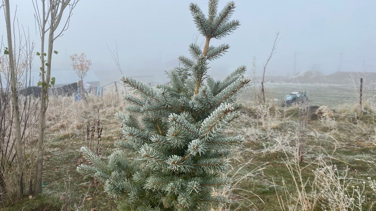 Sabahın ilk ışıklarıyla dışarı çıkan vatandaşlar, araç camlarında biriken ince buz tabakaları ve çatıları kaplayan kırağı manzarasıyla karşılaştı. Özellikle yeşil alanlarda bitki örtüsü ve çiçeklerin üzerinde zarif bir şekilde tutunan bu buz oluşumu, ilçede kış mevsiminin yaklaştığını gösterdi.