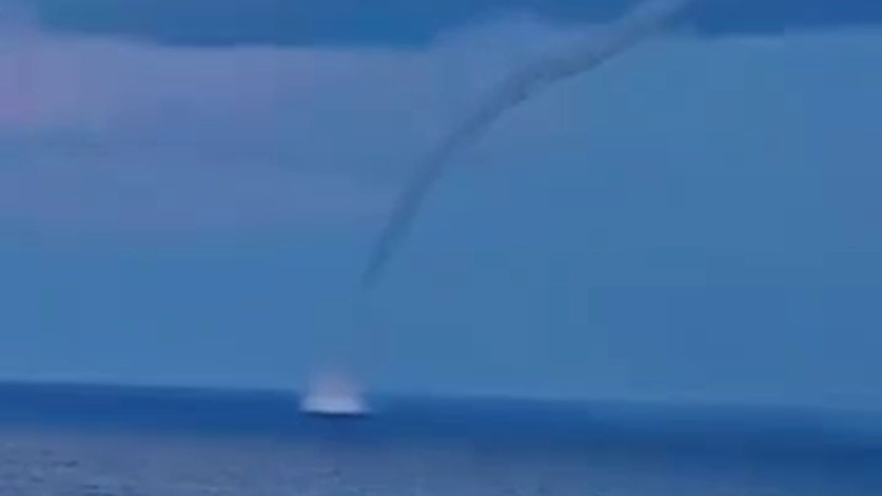 Hatay'da Akdeniz'in Samandağ açıklarında deniz üzerinde oluşan hortum, vatandaşlar tarafından cep telefonu kamerasıyla görüntülendi.