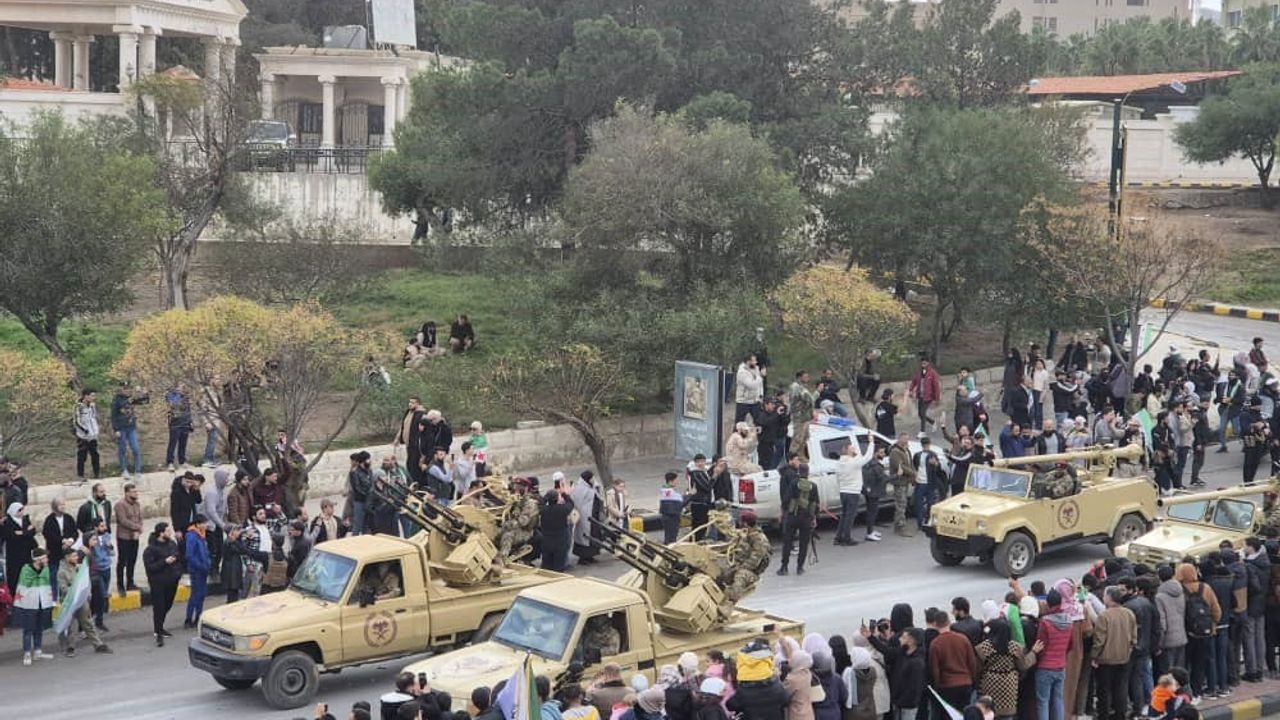 Suriye bayraklarıyla geçit törenini izleyen binlerce Suriyeli, sloganlar atarak zaferi kutladı. Töreni Suriyelilerin yanı sıra Devlet Başkanı Ahmed Eş-Şara, Suriye Dışişleri Bakanı Esad Hasan Şeybani, çok sayıda bakan ve askeri komutan izledi.