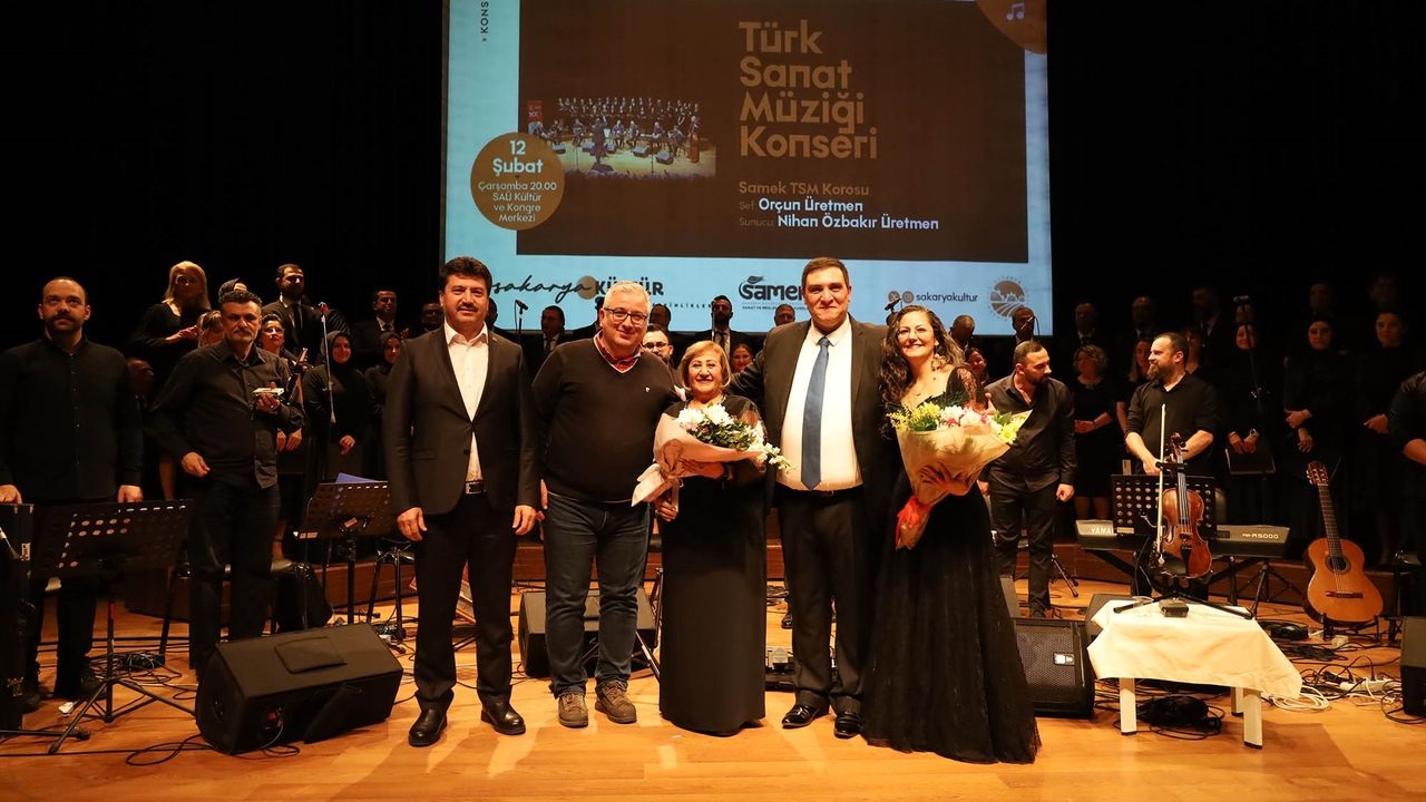 Sakarya Büyükşehir Belediyesi SAMEK'in seçkin Türk Sanat Müziği Korosu, SAÜ Kongre Merkezi'nde verdiği konserle müzik severleri sanat müziğinin zarif tınıları arasında unutulmaz bir yolculuğa çıkardı.
