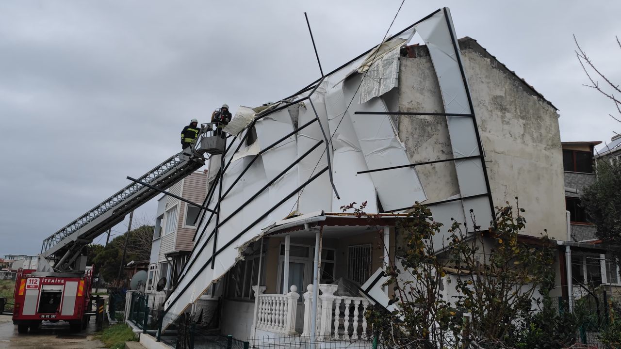 Gece saatlerinde aniden şiddetini artıran fırtına, Kızılcaterzi Mahallesi'nde bulunan yazlık sitelerde hasara yol açtı. Kuvvetli rüzgarın etkisiyle bazı binaların çatıları yerinden koparak site bahçelerine ve yollara düştü. İhbar üzerine bölgeye belediye ekipleri sevk edilirken, uçan çatı parçalarının kaldırılması için çalışma başlatıldı. Olayda can kaybı ya da yaralanma yaşanmadığı öğrenilirken, ekiplerin hasar tespit çalışmalarını sürdürdüğü bildirildi.