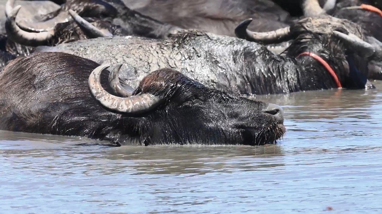Sıcaktan bunalan mandalar, toplu halde girdikleri Kızılırmak Deltası Kuş Cenneti’ndeki sulak alanlarda serinlerken ortaya eşsiz kareler çıktı. Bu anlar, Cumhuriyet Savcısı ve kuş fotoğrafçısı Vedat Soğukpınar tarafından fotoğraflanırken, mandaların su keyfine zaman zaman akbalıkçıllar da eşlik etti.