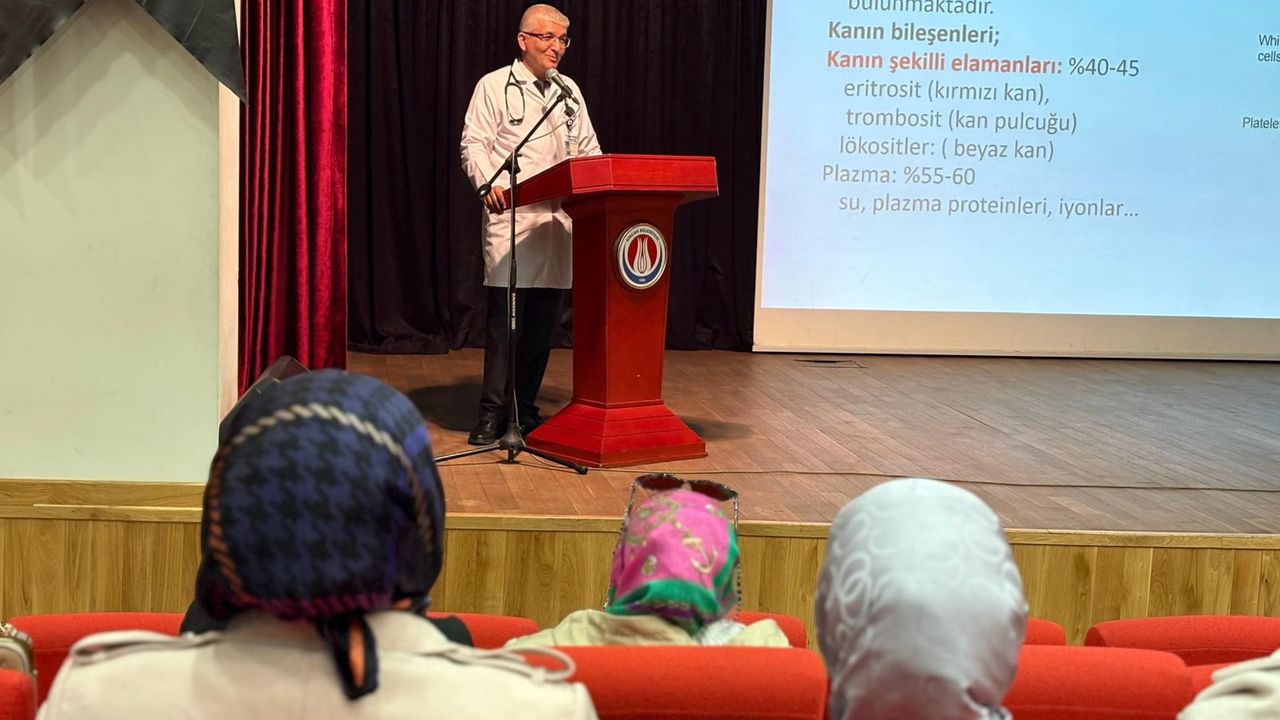 Seminerin konuşmacısı Hematoloji Uzmanı Prof. Dr. Ali Koşar, kan bağışının sağlık üzerindeki olumlu etkilerini anlattı. Sağlıklı bireylerin yılda dört kez kan verebileceğini belirten Koşar, bağış sürecinin detaylarını örneklerle açıkladı. Kimlerin kan verebileceği ve kimlerin veremeyeceği konularına da değindi.