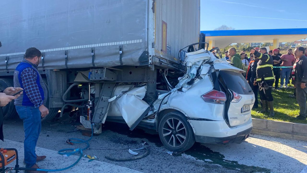 Otomobil tıra arkadan çarptı