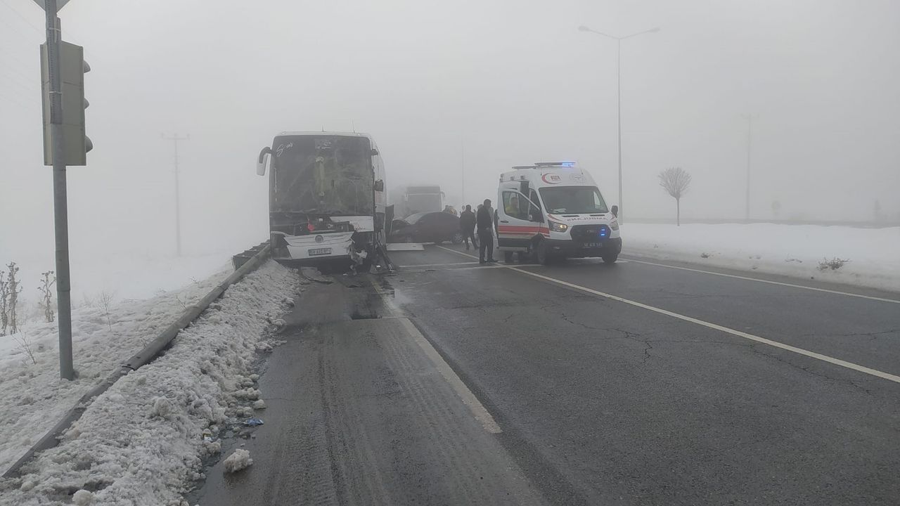Sivas'ın Gemerek ilçesinde sisli hava nedeniyle aralarında yolcu otobüsünün bulunduğu 4 aracın karıştığı zincirleme trafik kazasında 7 kişi yaralandı.