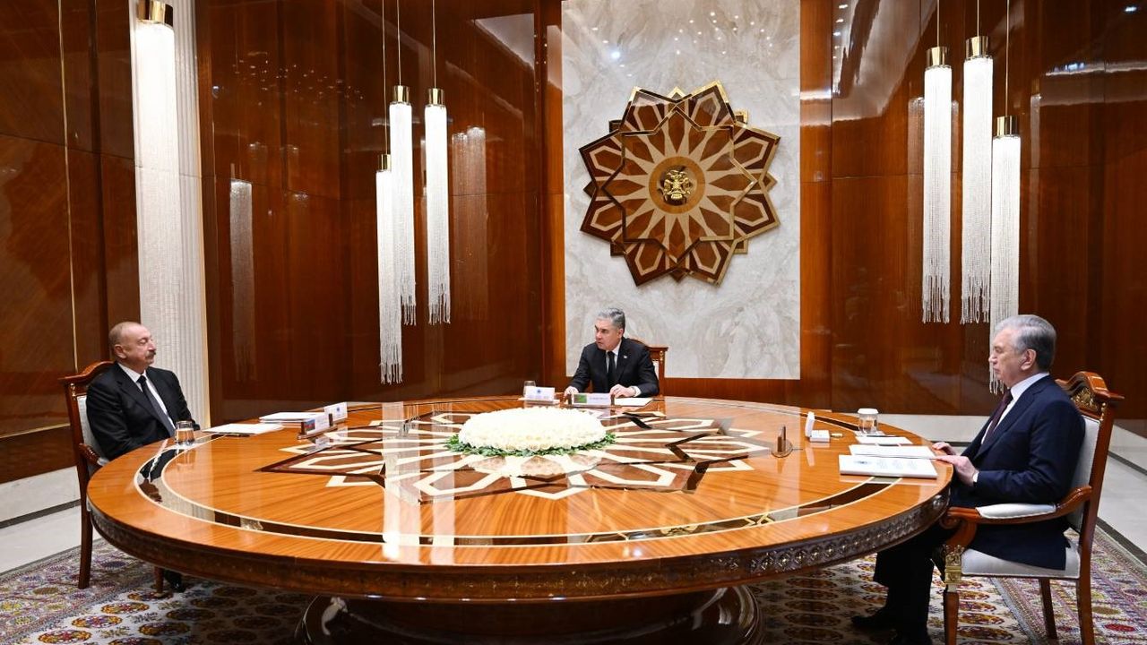 Azerbaycan Cumhurbaşkanı İlham Aliyev, Türkmenistan'ın Türkmenbaşı şehrinde resmi temaslarını sürdürüyor. Aliyev, temasları kapsamında Türkmenistan milli lideri ve Halk Maslahatı Başkanı Gurbangulu Berdimuhammedov ve Özbekistan Cumhurbaşkanı Şevket Mirziyoyev ile üçlü zirvede bir araya geldi. Aliyev, kültürel ve tarihi yakınlığın yanı sıra ortak değerlere sahip olan üç dost ve kardeş ülkenin iş birliği tarihinde yeni bir sayfa açtıklarını belirterek, "Misafirperver Türkmen topraklarında bulunduğum bugün bir kez daha belirtmek isterim ki Türkmenistan, Sayın Gurbangulu Berdimuhammedov'un bilge liderliğiyle sosyo-ekonomik gelişimde önemli başarılar elde etmiş, uluslararası rolünü ve itibarını güçlendirmiştir. Onun modern Türkmenistan'ın gelişimine verdiği katkı, verimli devlet yönetiminin, stratejik vizyonun ve vatana sadakatin örneğidir" ifadelerini kullandı.