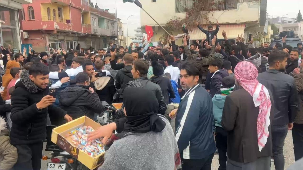 Şanlıurfa'nın sınır ilçesi Ceylanpınar'da Suriyeliler, Beşar Esed rejiminin çöküşünü coşku ile kutluyor.