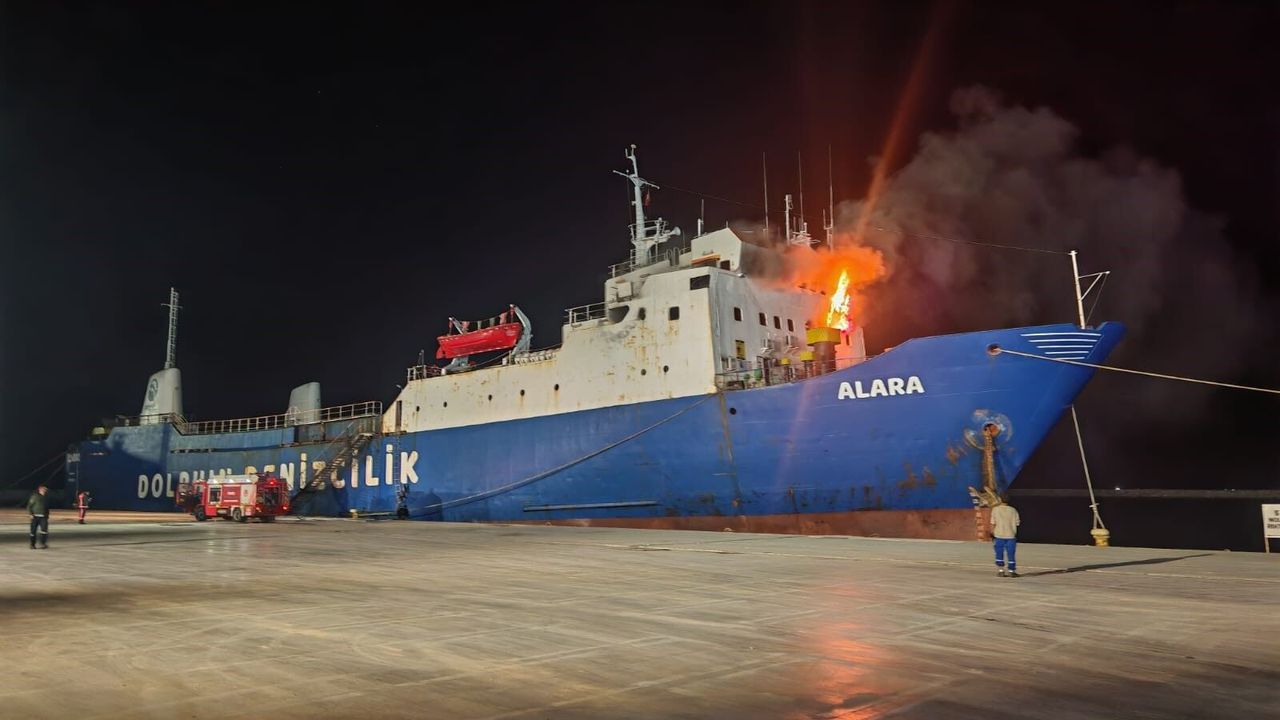 Silifke Taşucu Limanı’nda demirli Alara 2 isimli yük gemisinin mürettebat kamerasında çıkan yangın, sabaha karşı söndürüldü.