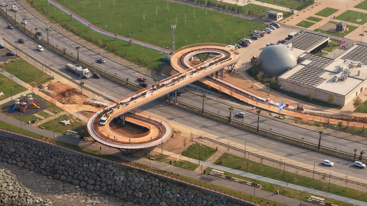 Trabzon’un Ortahisar ilçesi Pazarkapı Mahallesi’nde, Karadeniz Sahil Yolu üzerinde yapımı hızla devam eden Karadeniz’in ilk ekolojik üst geçidi, modern ve çevreci tasarımıyla dikkat çekiyor. 250 metre uzunluğundaki yapıda 4 metre genişliğinde bisiklet yolu, 2 metre genişliğinde yaya yolu ve yaklaşık 500 metrekarelik yeşil alan bulunuyor.