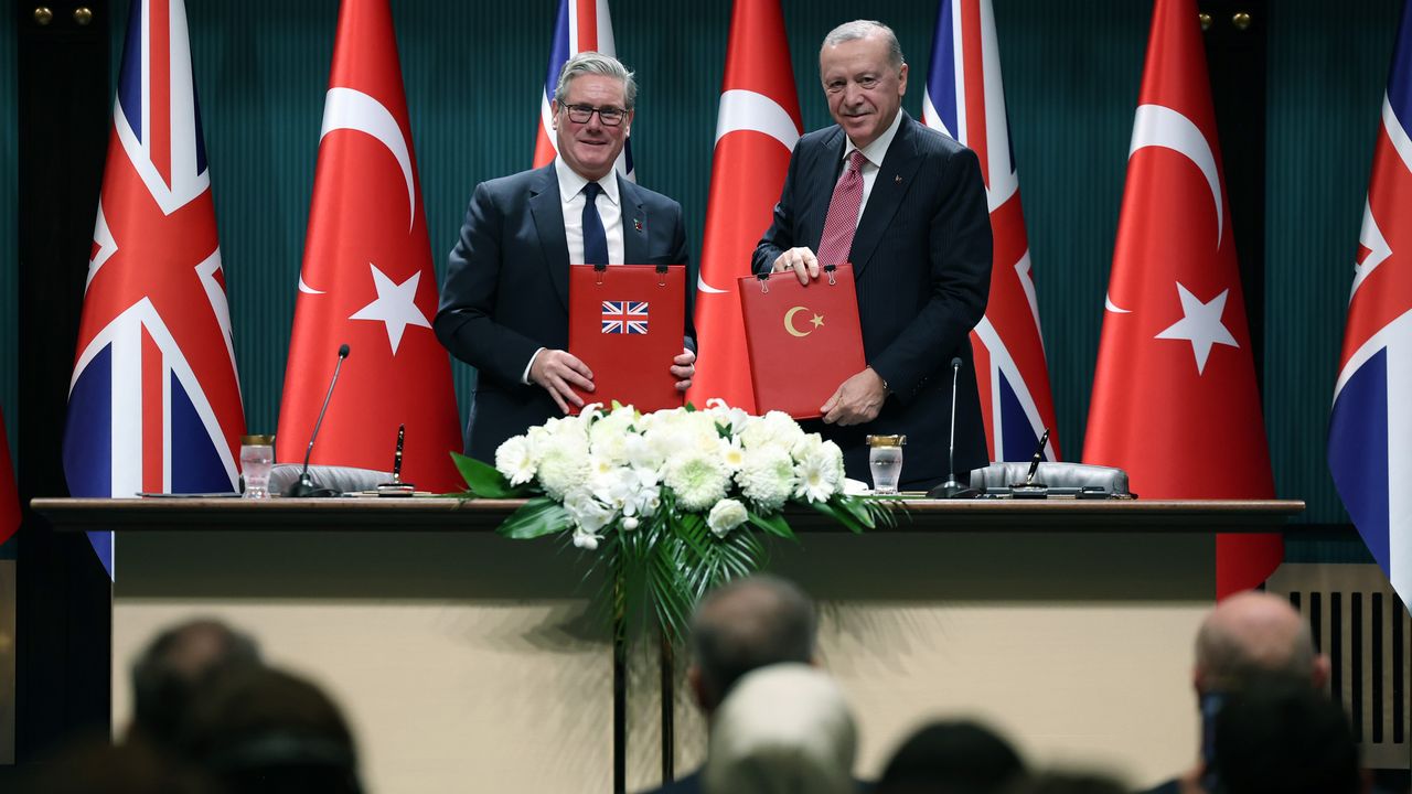 Cumhurbaşkanı Recep Tayyip Erdoğan ve İngiltere Başbakanı Keir Starmer, iki ülke arasında Eurofighter Typhoon savaş uçağı konusunda işbirliği anlaşması imzaladı. İngiltere Başbakanı Starmer'i Türkiye’de ağırlamaktan memnuniyet duyduğunu belirten Cumhurbaşkanı Erdoğan, "Stratejik ortak ve müttefik ülkeler olarak ikili konuların ötesinde uluslararası gündemi meşgul eden birçok meselede kendisiyle yakın diyaloğumuz var. Bugünkü görüşmelerimizin odağını ticaret ve savunma ilişkilerimiz teşkil etti. Malumunuz Birleşik Krallık ülkemizin en büyük ticaret ve yatırım ortakları arasında. Ticaret hacmimizi ilk etapta 30 milyar dolar, ardından 40 milyar dolara çıkarma kararlılığındayız" dedi.