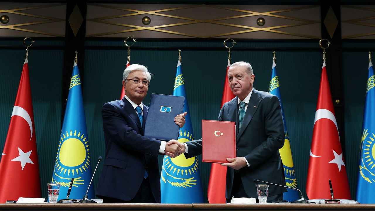 "Türkiye-Kazakistan Yüksek Düzeyli Stratejik İşbirliği Konseyi Beşinci Toplantısı Ortak Bildirisi" de Cumhurbaşkanı Erdoğan ve Kazakistan Cumhurbaşkanı Tokayev tarafından imza altına alındı.