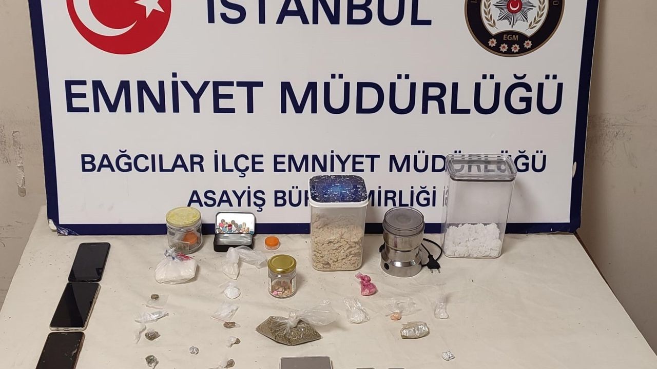 İstanbul Emniyet Müdürlüğü ekipleri tarafından Bağcılar Bağlar Mahallesi'nde yer alan 2 ayrı adrese uyuşturucu operasyonu düzenlendi. Yapılan operasyon sonucunda Y.E.O. , N.A. ve A.T. isimli şüpheli şahıslar yakalanarak gözaltına alındı. Yapılan aramalarda 4 adet hassas terazi, 3 adet cep telefonu, 3 bin 120 lira, 98,15 gram taş kokain, 35 gram metamfetamin, 46,15 gram bonzai, 3,4 gram marihuana, 3,6 gram kubar, 71 adet uyuşturucu hap, 950 gram extacy, 320 gram A.M. emdirilmiş peçete olmak üzere toplamda 1 kilo 456,3 gram uyuşturucu madde ve 71 adet uyuşturucu hap ele geçirildi.