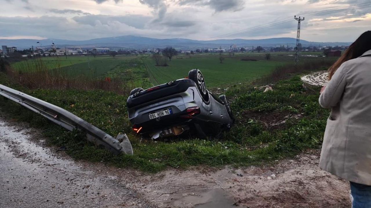 Kaza, saat 17.45 sularında Bursa-Balıkesir yolu üzeri Tatkavaklı mevkiinde meydana geldi. Söğütcam Tesislerine girmek isteyen sürücü tesisi kaçırınca navigasyonun yönlendirdiği yola girmek istedi. Bu esnada yol kenarındaki düşük yola aracın tekerleğinin girmesi nedeniyle araç takla atarak ters durdu. Araç içindeki 3 kişi kendi imkanlarıyla araçtan çıktı. Sürücü ve bir yolcu kazadan yara almadan kurturulurken, diğer yolcu hafif şekilde yaralandı. Kaza anı bir iş yerinin güvenlik kamerasına yansırken, polis kaza ile ilgili inceleme başlattı.